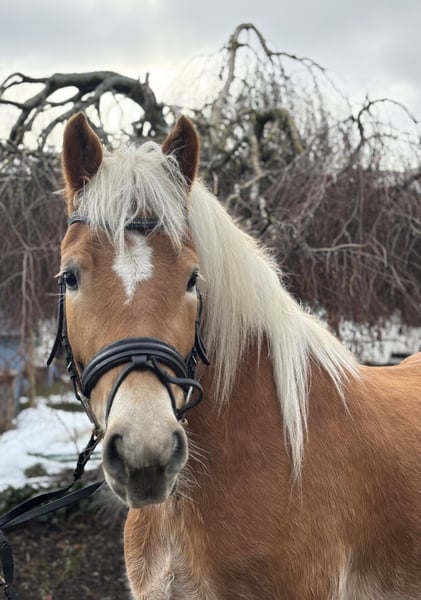 This charming Haflinger mare was born in 2021 and impresses with her friendly nature and strong character. She consistently displays a calm and gentle demeanor in handling, is well-socialized, and easy to manage. Her pleasant temperament makes her a suitable companion for both experienced riders and beginners.