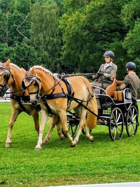 We are selling our 6-year-old Haflinger mare (approximately 150 cm), an absolutely sweet and people-oriented lady who loves to cuddle and is always well-behaved and reliable in daily handling. ✅ Training & Usage Options: Purebred Haflinger Ridden and driven in single and double harness Already won Class A in driving Ideal for leisure: trail rides, groundwork, or leisurely driving Goes out alone in the countryside with ease Very child-friendly (of course under adult supervision) 💖 Character: Uncomplicated, reliable, and calm Has never bucked or kicked during backing and driving Stands in a loose box and is familiar with herd dynamics ⚕️ Health: The mare had an inflammation in her knee/meniscus, which was treated by a veterinarian. Occasionally, she shows a slight lameness in the hindquarters (about 1–2/10). Therefore, she is being sold as a leisure horse. 🌿 Breeding In addition to her use as a leisure horse, she is also interesting for breeding: Registered in Stud Book I Lineage: Nythos WL x Aragon-Q – brings proven and valued Haflinger lines Due to her lineage and correct conformation, she is very suitable as a foundation for solid offspring 📸 Note on the pictures: In the photos, our mare is the horse on the left in the direction of travel. ➡️ A good home before price