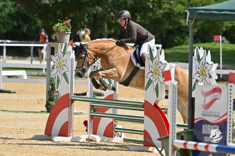 Zeer gemotiveerde en prestatiegerichte Haflingestute met een uitzonderlijke voorhandmechaniek. 5e plaats op het Europees Kampioenschap Jonge Paarden 2024, beste Oostenrijkse jonge paard in haar categorie 2024. Succesvol voorgesteld in springen en veelzijdigheid. Door haar goede bewegingen geen probleem met warmbloedafstanden. Aangedreven met één- en tweespannen. Stamboekkeuring 2e plaats. Wordt verkocht vanwege overstap naar grote paarden.