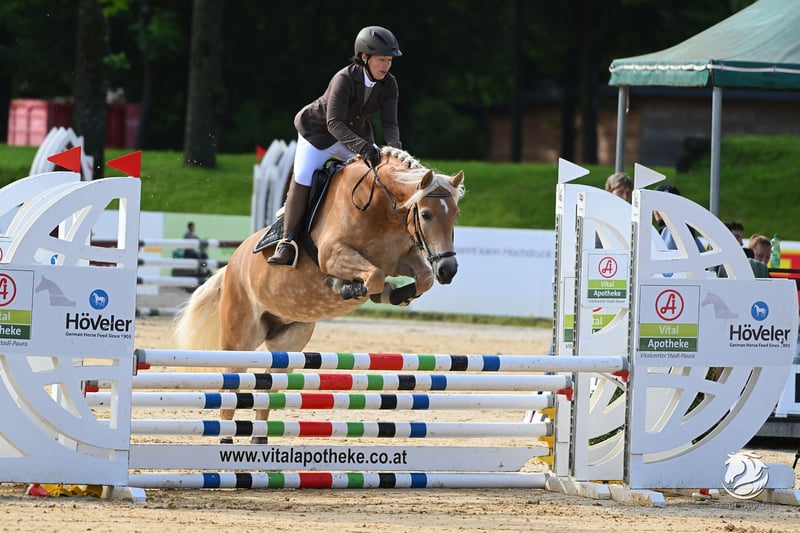 Highly motivated and talented Haflinger mare with exceptional front-end mechanics. Placed 5th at the 2024 European Young Horse Championships, and the top Austrian young horse in this category for 2024. Successfully competed in show jumping and eventing. Due to her good conformation, she has no issues with Warmblood distances. Handled both single and double harness. Achieved 2nd place in her mare performance test. Selling due to a switch to larger horses.