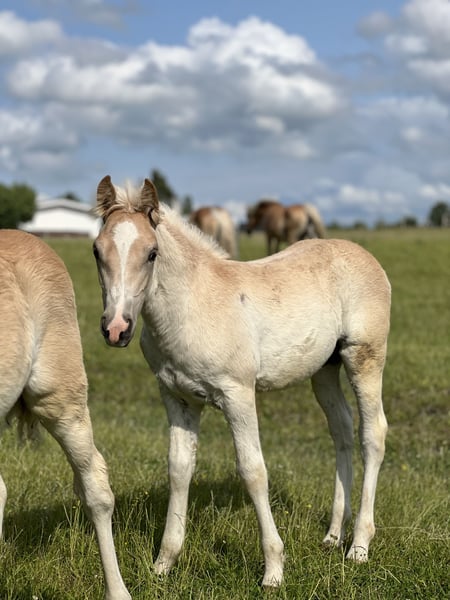 We are offering our colt for sale: Night Sky *March 26, 2025 with above-average basic gaits and an excellent temperament. Anyone interested is warmly invited for a visit. Parents and some siblings can be viewed. Viewings are available seven days a week by prior appointment. An exceptionally versatile partner for leisure riding, suitable for higher-level demands and competitive ambitions. Very gentle, well-socialized, and people-oriented. Ideal expected final height. Suitable for all equestrian disciplines. The siblings are used very versatilely—both in leisure riding and in competition, including jumping, dressage up to M level, Western riding, driving, or even as a fun pony for sledding. Subject to prior sale. Please try to arrange an appointment at short notice if possible. A scheduled visit does not constitute a reservation.