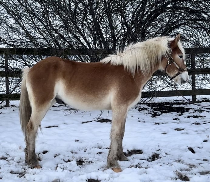 Niedlicher Haflinger-Hengst, fast 2 Jahre alt! Cees wurde im Jahr 2024 geboren. Er ist momentan etwa 1,39–1,40 m groß, wird also eine schöne Größe erreichen! Ein liebenswerter Pony im Umgang, sowohl am Stall als auch im Umgang mit anderen Pferden.