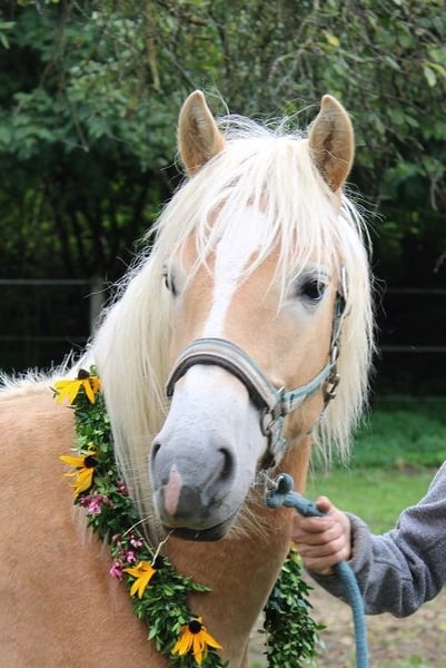 Haflinger roczniak, urodzony 27 kwietnia 2024 roku; prawidłowa budowa, końcowa wysokość co najmniej 150 cm; przyjazny, kochany, zrównoważony, ciekawy i przywiązany; spokojny temperament, ładny chód, miękki stęp; grzeczny podczas pielęgnacji kopyt, załadunku i odrobaczania; szukamy dla niego dobrego domu, ponieważ jest sympatycznym chłopakiem, inteligentnym i posłusznym; z dokumentami spełnia warunki do hodowli. - podczas "Bawarskiego Konkursu Foal 2024 w Monachium" uzyskał ocenę ogólną 8,5; Wychowany pomiędzy główną drogą a linią kolejową, z hałasem ulicznym, syrenami i przelotami helikopterów; Przez lato przebywał na pastwisku dla koni ogierów; ma teraz podwójną grzywę; był jednym z większych roczniaków; obecnie stoi razem z wałachem i dobrze się bawią; jest dość energiczny i aktywny; istnieje możliwość, aby na lato ponownie zabrać go na pastwisko.