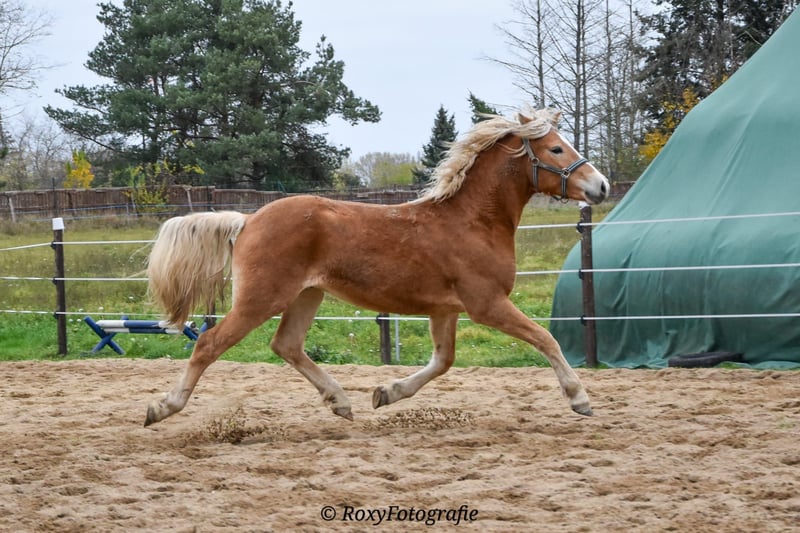 Charming Haflinger Yearling Stallion / Gelding for Sale Born in April 2023, he will turn three in the spring and is ready to explore the world. He descends from the Federal Premium Stallion, Bundessieger, and HLP winner Bugatti, who is currently a licensed breeding stallion at the Moritzburg State Stud and secured bronze at the 2023 Federal Driving Pony Championships. His dam is a Verband premium mare sired by the three-time World Champion stallion Liz. Abendstern x Winterstein. Balios combines the best Tyrolean genetics from his mother through Bugatti with the influential sire Bellisimo and the outstanding maternal line of Bugatti. As a foal, he excelled at his foal show, placed fifth at the Moritzburg Championships, and was Reserve Champion of the colt class at the Haflinger Day in Saxony-Anhalt. He is already very well developed and currently measures at least 1.51 m (likely more), with natural growth ongoing. He has been raised appropriately in a mixed-age young stallion herd. Balios is familiar with the leading rein, lunging, free movement in the arena, and free jumping. He was presented at the licensing and is currently shod in front. He is accustomed to the farrier, loading, and handling, and knows normal handling routines. Balios is a truly modern-looking Haflinger stallion with a sporty type. He is seeking a home where he can be further trained, challenged, and supported. He is not suited for just working twice a week; he needs a purpose. He learns quickly and always puts in great effort. I see him more as a leisure rider/mount with show ambitions. Balios has an incredible presence and is a real eye-catcher. He possesses three good basic gaits and, now that he is backed, is ready to start his career as a riding and/or driving horse. Anyone looking for a reliable partner primarily for sport will not be disappointed with him. He will be castrated shortly, and his training will gradually begin here. The price will increase with his training progress. Currently, he is an absolute raw diamond, waiting to be shaped and trained by the new owner. Transport possible if needed.