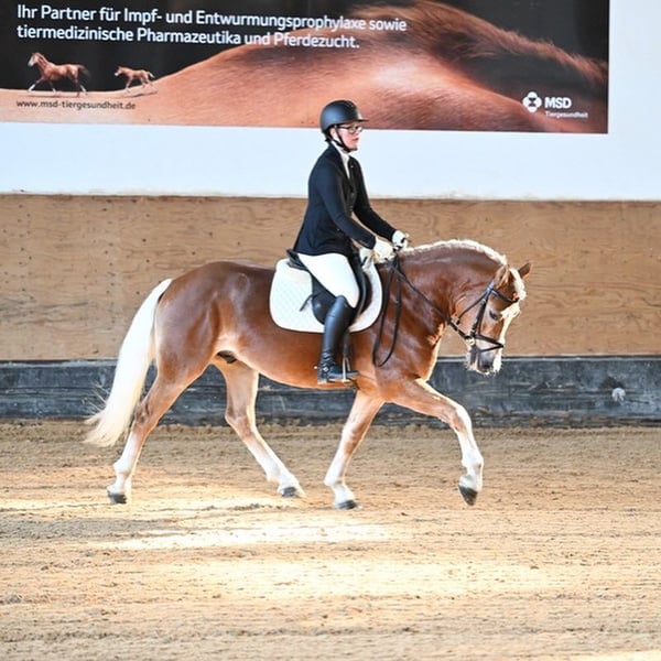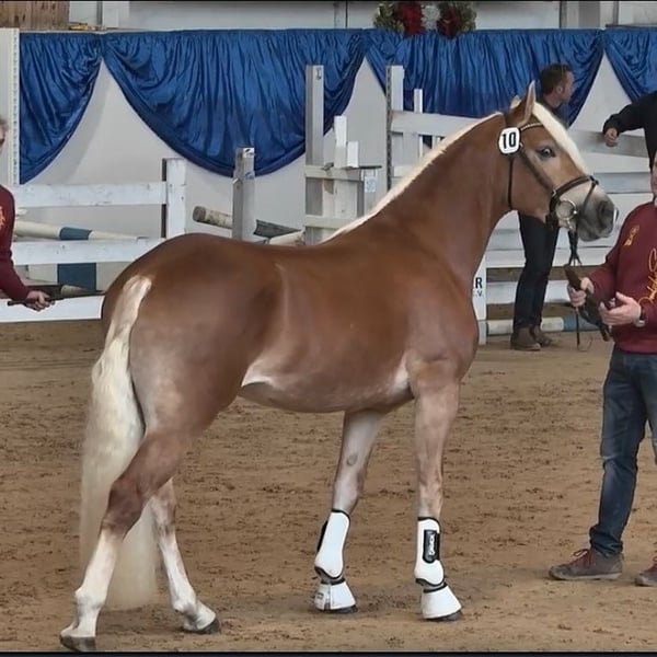 Étalon Haflinger approuvé et testé à louer (possibilité de vente) Andiamore PBS a été approuvé en 2023 à Munich et passera son test de performance de 30 jours en 2025 à Munich, avec une excellente note de 7,71 points. Père : Amore Mio, étalon élite et BPrH DSP Mère : Urmel, fille du champion du monde Nostalgie Nous proposons de louer Andiamore pour la prochaine saison de reproduction et souhaitons également continuer à le faire progresser en saut d'obstacles et en dressage. Si tout se passe bien, nous envisagerons également de le vendre. N'hésitez pas à nous contacter par message privé.