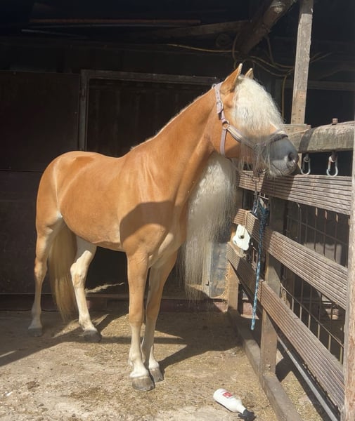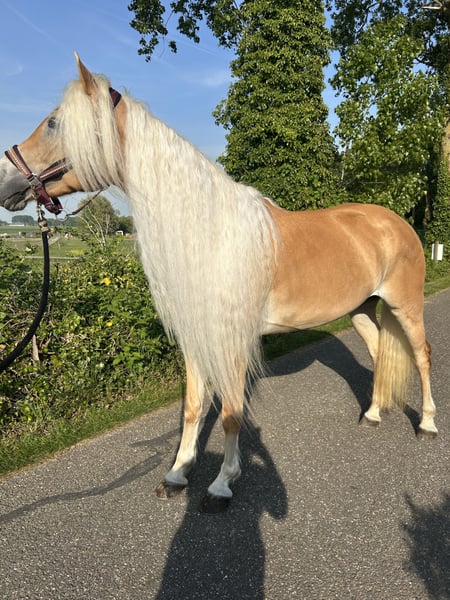 For Sale My First Lady is a 5-year-old Haflinger mare standing at 1.55 meters. She is a true eye-catcher with her long, flowing mane. She was born on May 5th, 2020. I bred her myself; her pedigree is Mi Lady vun der Millen x Liz Wales. She is registered with the KVTH studbook. As a foal, yearling, and 3-year-old, she was crowned champion at the regional keurings in the West. At three years old, she was officially entered into the studbook in Lunteren with a score of 77 points. At 3.5 years old, she delivered a beautiful stallion foal. She will also be very suitable for breeding purposes. She requires a confident and consistent handler, as she can still be somewhat dominant; she is a true mare. For more information, please send a private message.