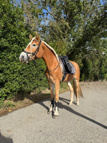 Zum Verkauf angeboten My First Lady ist eine 5-jährige Haflinger-Stute mit einer Schulterhöhe von 1,55 m. Sie ist ein echter Blickfang mit ihrem langen, wallenden Mähnen. Geboren am 05.05.2020, wurde sie von mir selbst gezogen. Ihre Abstammung ist: Mi Lady vun der Millen x Liz Wales. Sie ist im kvth-Stammbuch eingetragen und wurde als Fohlen, Jahrling und 3-Jährige Regionalchampion bei der Körung im Westen. Mit 3 Jahren wurde sie mit 77 Punkten in das Stammbuch in Lunteren aufgenommen. Mit 3,5 Jahren hat sie ein wunderschönes Hengstfohlen bekommen, was sie auch für die Zucht sehr geeignet macht. Sie zeigt ein konsequentes und selbstbewusstes Verhalten und benötigt eine sichere Hand, da sie noch dominant sein kann. Es ist eine echte Stute. Für weitere Informationen bitte eine Privatnachricht senden.