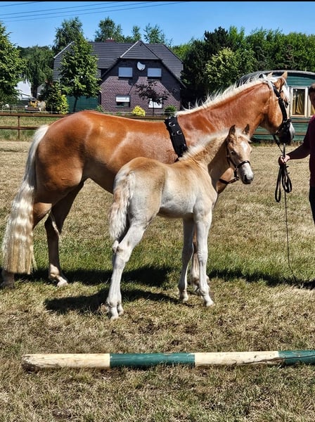 This little man can be weaned immediately. He is socially compatible, sweet, and absolutely people-oriented. His mother, the Tyrolean stallion Wendelin, was a championship mare and impresses with absolutely wonderful character traits when riding and driving. The father Neuglanz by Neustern also convinces with impeccable character and willingness to perform. He himself was already awarded the foal premium at this year's foal show and received, among other things, a score of 9.0 for his walk. So, anyone looking for a future versatile partner will find it here.