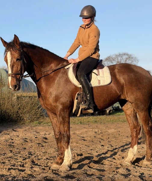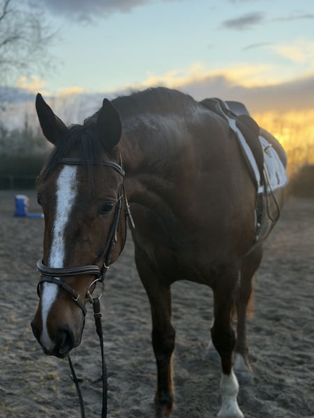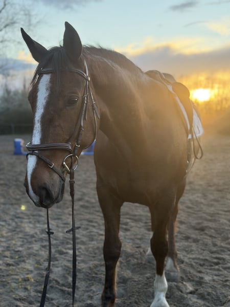 For sale is this exceptional mare. Foxy is truly a dream mare — an absolute highlight. She has an incredible presence, with good jumping technique and a motivated attitude in dressage, always eager to please. The mare boasts excellent basic gaits and smooth, expressive movements. A true all-rounder with a fantastic work ethic and very good nerves. She has a friendly and affectionate character. When working, she is completely willing and eager to be developed further. Foxy has a calm demeanor, is not overly sensitive in the legs, and responds excellently to weight and voice commands. Therefore, she is also suitable for ambitious leisure riders. She has competed several times on show jumping courses and has also been presented at competitions in Ireland. 8 years old Approximately 16.1 hh, very well-built with a strong physique. She is absolutely reliable and well-behaved in the terrain. An absolute dream horse that is difficult to find elsewhere! She will make her new owner very happy. A horse that learns quickly, is still fresh, and provides an exceptional riding experience!