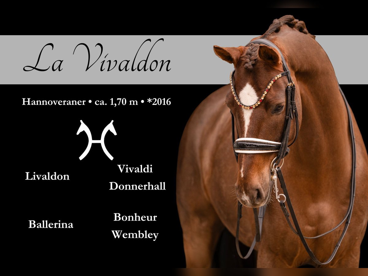 Liebe Interessenten, Für Terminvereinbarungen Probereiten senden Sie mir bitte eine WhatsApp. Für weitere Fragen bin ich tagsüber per WhatsApp erreichbar, telefonisch erreichen Sie mich am Besten zwischen 16 und 19 Uhr. Ich freue mich auf eine Kontaktaufnahme www.angelina-devittorio.de ⭐️La Vivaldon⭐️ Alter: 10 Jahre (2016) Größe: aktuell ca 1,70 m Abstammung: Livaldon x Bonheur Ausbildungsstand: S** Niveau, M** platziert AKU: gute Röntgenbilder vorhanden Zum Verkauf steht ein 10-jähriger, äußerst qualitätsvoller Dressurwallach abstammend von Livaldon x Bonheur. „La Vivaldon“ überzeugt durch seine hervorragende Rittigkeit, seine Nervenstärke sowie seine stets positive Arbeitseinstellung. Er ist ein absolut verlässliches Pferd im täglichen Umgang und eignet sich auch sehr gut für weniger erfahrene Reiter. Er ist siehreich und hochplatziert bis zur Klasse M* / M** und beherrscht bereits sicher die Lektionen der Klasse S* / S**. Erste vielversprechende Piaffe-Ansätze sind ebenfalls vorhanden. Super leichtrittig und angenehm zu reiten , sehr einfach in den Lektionen Der Wallach zeigt sich stets unerschrocken, leistungsbereit und mit genau dem richtigen Go ausgestattet. Er ist sehr leicht zu reiten, angenehm im Handling und dabei äußerst robust. Er hat top Röntgenbilder, war immer fit und gesund und bis zu seinem 9. Lebensjahr in einer Hand war – somit wurde er nicht „herumgereicht“. Abgabe erfolgt ausschließlich aufgrund von Bestandsverkleinerung. ⚜️Tel: 0171-3438949 ⚜️a.devittorio@web.de ⚜️https://www.ehorses.de/angelinadevittorio Facebook und Instagram Angelina De Vittorio