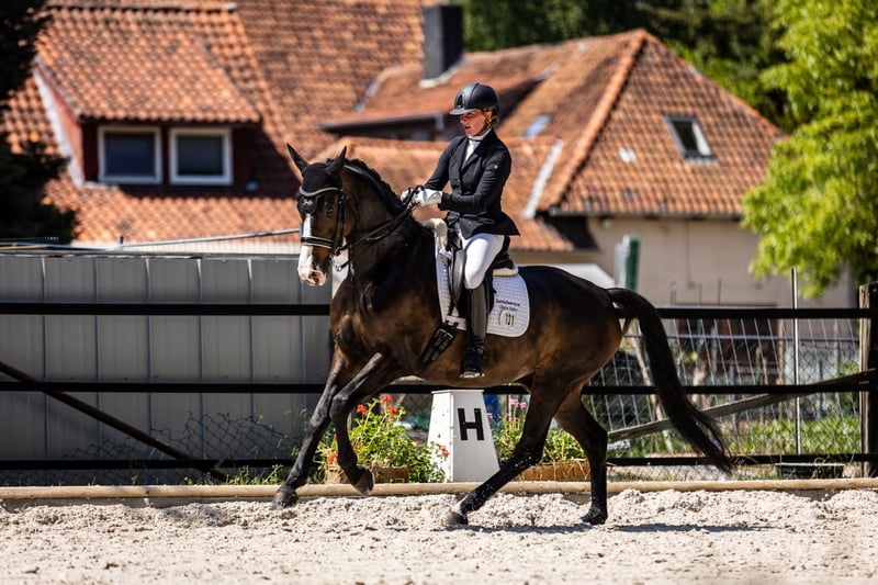 Hier steht ein sehr gut ausgebildeter, charmanter Wallach zum Verkauf! Platziert bis S*-Dressur, M**-Dressuren gewonnen! Ein aktueller TÜV ohne Befunde liegt vor. Deegan ist turniererfahren und seit seinen ersten öffentlichen Auftritten bei uns in Beritt. Ein Pferd das schonend und behutsam bis zur Klasse S bei uns erfolgreich ausgebildet und vorgestellt wurde.