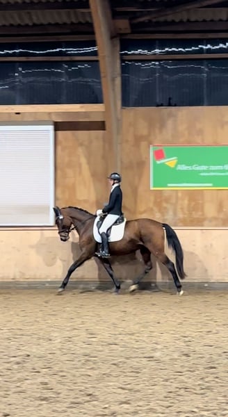 Beautiful gelding with an excellent temperament Multiple competition placements in riding horse classes from Wb up to A dressage. Recently, he won a riding horse class. He is comfortable for children to sit on and easy to ride, performing wonderfully at competitions. He is experienced in terrain riding, lunging, pole work, riding with a halter, and riding without a saddle. I can easily imagine him as a family horse, where he is supported by adults and ridden by children. I would like to sell him from our riding school to a loving private home where he will receive plenty of attention. He loves being groomed. He is also well-behaved on the longe line with unbalanced beginner riders. Trial ride €20, including pre-riding. For serious inquiries, please call or WhatsApp at 015204547603.