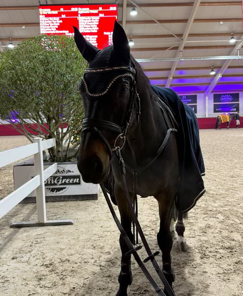 For sale is the 11-year-old gelding Anubis (born 2015), sired by Asagao xx out of Cornet Obolensky. Anubis is a kind-hearted, honest, and motivated horse that always aims to please his rider. He impresses with his clarity of mind, his calm demeanor, and his pleasant character – both under saddle and in daily handling. Sport-wise, Anubis has already competed up to class L show jumping and has been presented in M-level show jumping by an amateur rider. He also has extensive experience in eventing, having competed up to class L in that discipline as well. Due to a lease, he was not shown much last year and was not trained to his full potential. However, he has recently returned to a very good competitive condition. Anubis has mild misalignments in his back – these have never limited him in any way, and he has always been eager, motivated, and fit. Further X-rays of his legs from 2020 are available, showing no abnormalities. He has been in the same ownership for six years and has had no health issues during this time. The sale is solely due to the owner studying and no longer being able to dedicate enough time to him. Thanks to his balanced temperament, Anubis is suitable not only for the ambitious competition rider but also makes an ideal family horse, providing trust and security to his handler. He is farrier- and loading-trainable, very easy to handle, and a truly loyal soul who gives his human much trust and affection. Please feel free to contact me at 015732463127 for any further questions.