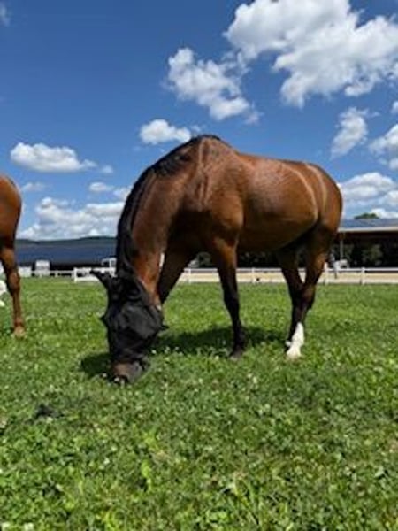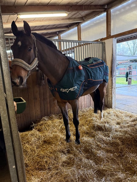 With a heavy heart, we are parting with our Semper Fi, who has been a great teacher for our daughter. We now have three horses in the stable, and unfortunately, one is too many. Our Semper Fi is a horse that fulfills many expectations. He has brought us a lot of joy and has been to many competitions with our daughter. Semper Fi has great potential and has been treated like a true sport horse with us. Our horses had a clear weekly program, and when participating in competitions, we always made sure to give them rest. An osteopath came four times a year to treat them. Besides training, he was in the lungeing arena or in the pasture daily. The feeding was also tailored to performance and recovery to provide the best care for the horse. Semper Fi was in professional training once a week. Before he came to us, Semper Fi was classified up to 1.20m. Our daughter has jumped up to 1.00m. We wish Semper Fi a home where he receives the same love and passion for him and equestrian sports. He is a true friend but can also be a bit headstrong. Semper Fi is not a beginner's horse, but with a Level Brevet, you will find joy in him. He will be a good teacher.