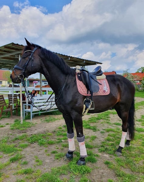 Z ciężkim sercem szukam dla mojego 10-letniego wałacha Hannovera nowego domu w stajni otwartej, z dostępem do siana 24/7. Jest absolutnie spokojny, odważny i łagodny jako lider stada – można go porównać do „labradora w rozmiarze konia”. Brak mu złych nawyków, jest bardzo przywiązany do ludzi i wprost cudowny w obsłudze. Radzi sobie zarówno sam, jak i w grupie na wycieczkach terenowych. Prace u kowala, wizyty u weterynarza czy holowanie nie stanowią dla niego problemu. Do klasy A w ujeżdżeniu był wytrenowany, jednak ze względu na stan zdrowia obecnie jest w stanie pracować jedynie w chodzie i szuka miejsca jako koniowaty towarzysz, który jest w stanie podtrzymać jazdę w ograniczonym zakresie. Nie nadaje się już do startów w konkursach ani do pracy w ujeżdżeniu na placu! Zdrowie: - Regularnie szczepiony (w tym przeciwko wirusowi Zachodniego Nilu), odrobaczany - Regularnie dwa razy w roku odwiedzany przez osteopatę - Zęby poddawane co najmniej raz w roku Kwasica kopytowa dwa lata temu, spowodowana lekami – wyleczona, dostępne zdjęcia rentgenowskie, nadal wymaga podkowy, codziennie na kilka godzin na pastwisku. Operacja kolana – bez laski, nie kuleje. Niewydolność zastawki mitralnej – bez leków, bez powiększonego serca, wystarczy coroczna kontrola. W chodzie jest w stanie pracować warunkowo, w truchcie i galopie obecnie nie! Ze względu na młody wiek, nie wyklucza się, że w przyszłości będzie mógł znowu spokojnie jeździć w terenie we wszystkich chodach. Życzę mu kochającego domu, który zapewni mu spokój i dużo czułości. Priorytet ma miejsce, nie cena! W razie pytań chętnie służę dodatkowymi informacjami.