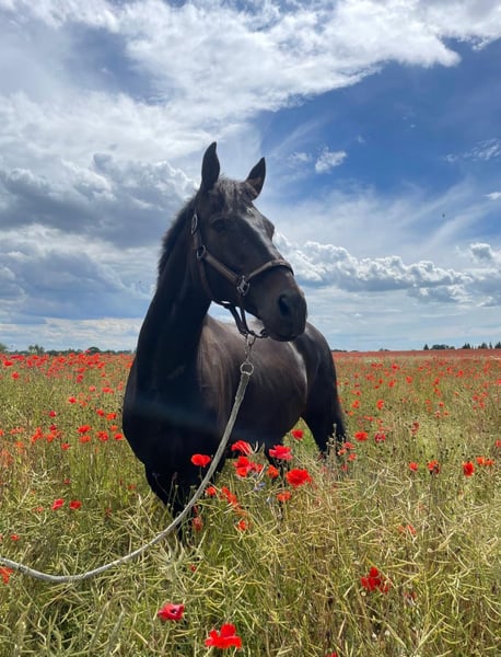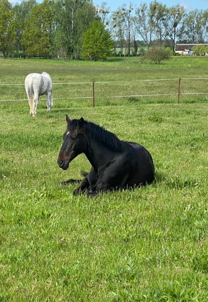 With a heavy heart, I am seeking a new home for my 10-year-old Hanoverian gelding in an open stable with 24/7 hay access. He is absolutely uncomplicated, fearless, and a gentle herd leader—a “Labrador in horse size.” He has no bad habits, is very people-oriented, and a true sweetheart to handle. He can go alone or in a group into the terrain. Farrier, veterinarian, or trailering are no problem. He was trained up to elementary level in dressage but is currently only able to work in walk due to health reasons and is therefore looking for a home as a lightly ridden companion horse. No longer suitable for competitive sport or dressage work in the arena! Health: - Regularly vaccinated (including West Nile), dewormed - Visited osteopath twice a year - Teeth cleaned at least once a year He had laminitis two years ago due to medication—fully recovered, X-rays available, still needs shoes, and stands on grass for several hours daily. Knee operated—lame-free. Mitral valve insufficiency—no medication needed, no enlarged heart, annual check-ups are sufficient. He is conditionally suitable for walk only; trot and canter are currently not possible. Due to his young age, it is not excluded that he may be able to be ridden comfortably in all gaits in the terrain again at some point. I wish for a loving home that offers him peace and plenty of attention. Priority goes to place, not price! Please feel free to contact me with any questions.