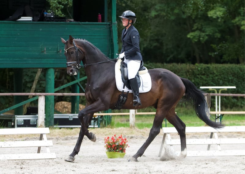 Lino is a willing-moving gelding with three good basic gaits, with particular emphasis on his walk and canter. He is very easy to ride and brings joy every day. He consistently demonstrates a good work attitude and has a lot of enthusiasm for jumping. This year, he has been successful multiple times at competitions up to class A (Dressage A, Jumping E). He is curious, alert, and very attached to his trusted humans. He shows no bad habits in handling and loads effortlessly. He also behaves impeccably with the farrier. He is accustomed to hacking out in the woods and on the beach. Overall, Lino is a sweet partner for sport or leisure riding who always wants to do his best. He is used to being outside all day in the summer and is lower in rank within a gelding herd. He feels most comfortable when he is outdoors a lot. I am only selling him to the very best hands due to family changes. Priority goes to the rider, not the price! Due to some minor flaws that do not limit him, I am selling him below value!