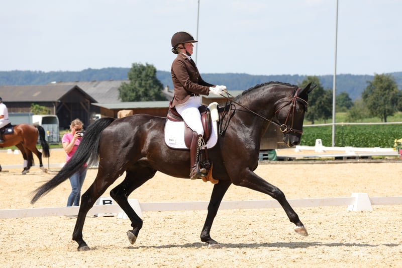 Wir bieten schweren Herzens aufgrund Zeitmangel unser talentiertes Dressurpferd zum Verkauf an: 🐴 Name: Santorini 📅 Geburtsjahr: 2014 📏 Stockmaß: 1,75 m 🧬 Rasse: Hannoveraner 🎓 Ausbildungsstand: Dressur Kl. M, Serienwechsel+ Pirouetten begonnen 🌟 Besonderheiten: Hervorragende Grundgangarten, lernwillig, menschenbezogen und sehr kuschelbedürftig. Beschreibung: Dieser schwarze elegante Wallach besticht durch seine beeindruckende Präsenz, schwungvolle Bewegungen und exzellente Rittigkeit. Er ist lektionssicher, besonders stark in Traversalen und verfügt über einen sicheren Schritt, klaren Takt im Trab und ausdrucksstarken Galopp. Auch im Umgang ist er ein echter Schatz, immer kopfklar und ist niemals böse! 2023 hatte er einen Unfall, wo er sich hinten links die Strecksehne gerissen hat. Dies beeinträchtigt ihn jedoch in keiner Form! In Deutschland hat er Platzierungen bis M** auf renommierten Turnieren. In Österreich hat er Platzierungen in LM und LP. Er ist Schmiede- und verladefromm. Ideal für: Ambitionierte Turnierreiter, Umsteiger aus der Jugendklasse oder Freizeitreiter mit gehobenem Anspruch, die sich ein zuverlässiges und leistungsbereites Pferd wünschen. Er ist kein reines Anfängerpferd, da er gerne gefordert und gefördert wird! 📍 Standort: 6175 Kematen 💰 Preis: 30.000 VHB Es werde für das Probereitet 20€ verrechnet, diese wird bei Kauf gut geschrieben.