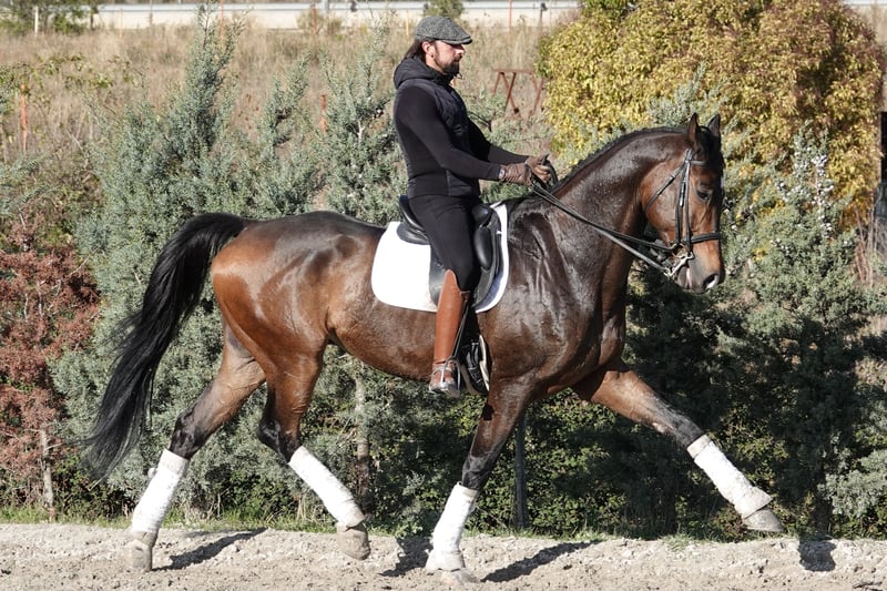 D'JIGOLO DE LA GESSE – Your Future Grand Prix Partner An 11-year-old Hanoverian gelding who already knows the way. Standing at 180 cm, he embodies pure German elegance combined with authentic Grand Prix movements. WHY D'JIGOLO IS REMARKABLE: This is not a horse of promises, but a horse of proven facts. D'Jigolo already performs the movements: clean one-tempi changes, a well-established piaffe you could show tomorrow, and a passage that floats effortlessly. At 11 years old, he’s at the perfect stage: young enough for many years of competition ahead, experienced enough to guide you confidently. YOUR EXPERIENCE WITH D'JIGOLO: This is an honest horse. He will tell you exactly what you did right and what needs improvement. He doesn’t forgive mistakes, but that’s what makes you a better rider. Ideal for: ✓ Young Riders aiming to learn genuine Grand Prix ✓ Experienced riders ready to progress to the next level ✓ Those who value a demanding yet fair teacher ✓ Serious amateurs with a solid technical foundation ✓ Professionals seeking a reliable schoolmaster Not suitable for beginners. Designed for riders committed to working and improving. CURRENT LEVEL (Near Grand Prix): - One-tempi changes – established - Two-tempi changes – clean - Piaffe under saddle – established with 15+ quality steps - Passage – clear cadence - Piaffe-passage transitions – fluid and controlled - Canter pirouettes – in development He already possesses 90% of the Grand Prix movements. The remaining 10% is something you will develop together. TEMPERAMENT – HONEST AND STRAIGHTFORWARD: “He's demanding but never unfair” – that’s the best way to describe him. He’s not the horse that forgives a loose leg or inconsistent aids. But he’s not nervous or complicated either. He’s clear: if you ask correctly, he responds; if not, he simply says “try again.” This honesty is invaluable for riders who truly want to master FEI-level riding. YOUR PERSONAL TEACHER: Imagine having a trainer who: - Knows all Grand Prix exercises inside out - Shows you exactly how they should feel when executed correctly - Won’t allow shortcuts or half-measures - Is patient when you perform correctly - Pushes you to become more precise every day That’s D'Jigolo: a true schoolmaster in the best sense. HEALTH & DOCUMENTATION: ✓ Piroplasmosis free (negative test) ✓ Complete veterinary checks ✓ Sound and healthy ✓ X-rays available 180 cm (17.3 hh) – Hanoverian – Bay READY TO TEACH YOU: D'Jigolo doesn’t need more training – he trains you. You can ride him tomorrow and start learning. Every session is a masterclass if you’re willing to listen to what he has to teach. The question isn’t whether he can take you to Grand Prix – it’s: are you ready for the journey?