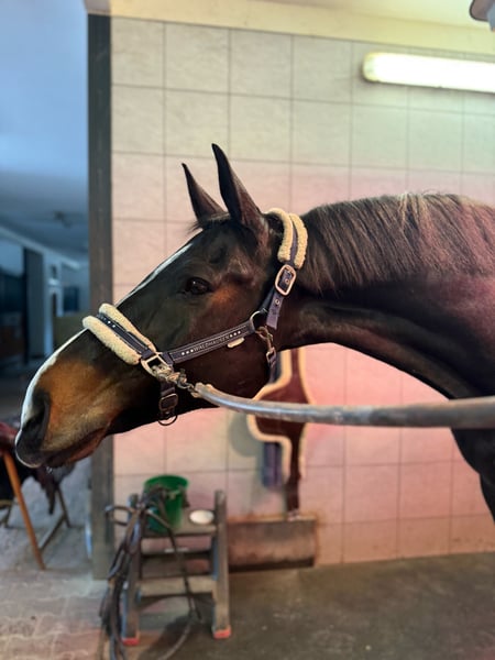 Empfindliches Pferd auf der Weide, sonst sehr sanft. Voll gesund. Sehr gut ausgebildet in der Dressur und im Springen.