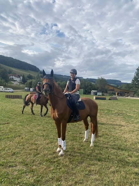 Zum Verkauf steht ein beeindruckender Wallach mit hochkarätiger Springabstammung, der durch Qualität, Rittigkeit und außergewöhnliche Vielseitigkeit überzeugt. Aufgrund seines späten Anreitens ist er körperlich unverbraucht und präsentiert sich in hervorragendem Gesundheitszustand – er war noch nie lahm und ist frei von Erkrankungen. Dieser Wallach vereint Leistungsbereitschaft mit einem bemerkenswert ausgeglichenen Charakter. Er ist nervenstark, belastbar und zeigt sich sowohl im täglichen Training als auch auf fremden Anlagen absolut souverän. Lehrgänge, Auswärtstraining und Turniere meistert er stets brav, aufmerksam und angenehm zu reiten. Er überzeugt nicht nur durch seine Leistungsbereitschaft, sondern vor allem durch seinen ausgeglichenen, verlässlichen Charakter. Nervenstark, belastbar und stets kooperativ zeigt er sich im täglichen Training ebenso souverän wie auf fremden Anlagen. Lehrgänge, Auswärtstraining und Turniere meistert er brav, aufmerksam und angenehm zu reiten. Mit ihm konnte ich sowohl die Springlizenz als auch die Ausbildung zum Übungsleiter Reiten erfolgreich und mit Auszeichnung absolvieren. Seine fundierte Ausbildung umfasst:Dressurarbeit, Springen, Vielseitigkeit, Bodenarbeit, Doppellonge, Fahren vom Boden, Working Equitation, Halsringreiten sowie Ausritte – selbst am Halfter zuverlässig. Auch die Galoppbahn kennt er bestens. Im Umgang zeigt er sich vorbildlich: selbstverständlich schmiede- und verladefromm. Für sein zukünftiges Zuhause wünschen wir uns eine Haltung mit Box und ganztägigem Koppelgang in der Gruppe. Er ist sowohl gemischte Herden als auch reine Wallachgruppen gewohnt. Damit eignet er sich ideal für ambitionierte Amateursportler, die einen zuverlässigen, vielseitigen Partner suchen – ebenso wie für Reiter, die im Gelände sicher abschalten und die Seele baumeln lassen wollen. Er ist auch eine gute Wahl für alle, die Sonderprüfungen, wie Lizenz oder Ausbildungen wie Übungsleiter oder Reitwart, absolvieren wollen. Probereiten natürlich möglich und erwünscht. Bei Interesse sende ich gerne Videos.