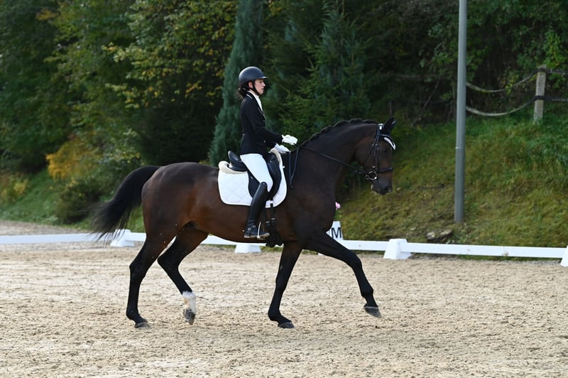 Simsalabim è un cavallo da sogno assoluto. Sempre motivato e coinvolto, rende molto divertente l'allenamento quotidiano. È stato addestrato e piazzato fino alla classe L**. È stato iniziato ai cambi di galoppo. Inoltre, ama molto andare in campagna e si entusiasma anche per qualche salto. A causa di una minima lesione alla radice del tendine digitale, Simsa è rimasto in paddock per 14 mesi dopo il trattamento (programma di passeggiata + onde d’urto...). Da marzo 2025 è stato gradualmente ricostruito e da giugno è tornato completamente in allenamento. Recentemente è stato presentato con successo in gara. Desideriamo per lui una sistemazione con passeggiate quotidiane in paddock o molto tempo in paddock. Anche una sistemazione in paddock aperto ci sembra adatta per Simsa. È piuttosto dominante, sempre aperto e affettuoso con gli altri cavalli. Un fieno di ottima qualità, disponibile 24 ore su 24, è essenziale. A causa della sua taglia e del suo atteggiamento sportivo, Simsa NON è un cavallo adatto ai principianti. Non ha mostrato nessuna cattiva abitudine con noi, ma ha molta energia e un carattere piacevole e deciso. È importante avere almeno una buona capacità di sedersi senza tensione, per poter godere appieno della sua compagnia. Per ulteriori informazioni, contattare preferibilmente tramite WHATSAPP: +43 650 2819590.