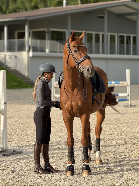 In vendita il nostro splendido castrone da dressage del 2012. "Baldassarini" proviene dal rinomato allevamento di dressage Wieghaus-Vorwerk (Belstaff x Dancier). È stato approvato a 3 anni e successivamente castrato. Nel lavoro quotidiano, Balu è una garanzia di divertimento. È molto raffinato da montare nel dressage, desidera compiacere e ha un atteggiamento sportivo assolutamente ambizioso. È a un solido livello L/M, ma con le conoscenze adeguate del cavaliere, sono accessibili tutte le lezioni M (potenziale per molto di più chiaramente presente). Balu è arrivato da noi dalla sua prima proprietaria. Poiché desidero svilupparmi ulteriormente nel salto ostacoli, a lungo termine non riceverà da noi l'attenzione che merita. Per questo motivo, siamo alla ricerca di una nuova casa 5* per lui. Nella vita quotidiana e nell'allenamento è il cavallo da insegnamento perfetto e assolutamente adorabile (gestibile anche dai bambini). In campagna ha bisogno di un cavaliere sicuro quando è da solo, ma in due è molto facile. È disponibile un esame veterinario completo del 06/22, inclusi i raggi X senza osservazioni. Balu ha un rumore respiratorio (roaring), che non lo limita in alcun modo. (Se desiderato, un'operazione è fondamentalmente molto semplice). Per questo motivo, siamo disposti a cederlo per un posto meraviglioso, ben al di sotto del suo valore. Contatto preferibilmente tramite WhatsApp, 0041 79 277 76 21.