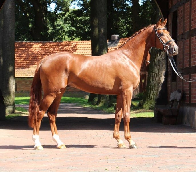 A la venta nuestro hermoso caballo de doma de 2012. "Baldassarini" proviene de la reconocida línea de cría de doma Wieghaus-Vorwerk (Belstaff x Dancier). Fue aprobado en su prueba de selección a los 3 años y posteriormente castrado. En la rutina diaria, Balu es un auténtico garantizador de diversión. Es muy sensible en la doma, busca agradar y tiene una actitud absolutamente ambiciosa como deportista. Está a un nivel sólido de L/M, pero con los conocimientos adecuados del jinete, también puede realizar todas las lecciones de M (potencial para más claramente presente). En el día a día y en el entrenamiento, es el caballo ideal para enseñar y es completamente adorable (fácil de manejar incluso por niños). En el campo, solo requiere un jinete seguro; en compañía, es muy fácil de montar. Debido a su calidad excepcional y su elasticidad en los movimientos, solo es recomendable para jinetes avanzados. Se dispone de un certificado de salud (AKU) de 06/22, incluyendo radiografías sin hallazgos relevantes. Balu tiene un silbido en la garganta (fiebre laríngea), que en ningún momento le limita. (Si se desea, una operación es generalmente muy sencilla). Por ello, estamos dispuestos a dejarlo por un lugar excelente a un precio muy por debajo de su valor.
