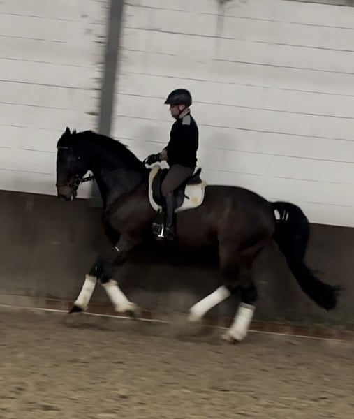 Dieser wunderschöne Wallach sucht seinen neuen Wirkungskreis. Mit bestem Blut (Fidertanz x De Niro) und stetiger Arbeitsbereitschaft will er alles richtig machen. Er zeichnet sich besonders für seinen lieben und ehrlichen Charakter aus. Zudem bringt er Solide Grundgangarten mit. Schmiede und Verladefromm. Ca. 1,85 m groß Aktueller Tüv ohne Befunde vorhanden 5 jährig Qualifikation zum Bundeschampionat bis hin zum kleinen Finale M Dressur sicher und vorgestellt S Dressur im Training Er ist ein absolutes Verlasspferd. Video kann auf Anfrage verschickt werden