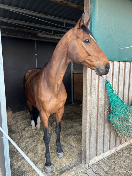 Gelding | 15 years old | approx. 16.1 hh | Hanoverian from Herzensdieb x Dacaprio Due to lack of time, I am selling my fifteen-year-old gelding, whom I have trained myself. He is an absolutely lovable, honest partner who brings joy every single day. Training: Confident at M-level dressage. However, I have not competed with him in recent years. Competition starts are possible but should not be the primary focus. We have only jumped for fun, but he is very motivated and enjoys it. Temperament: Absolutely straightforward and people-oriented in handling. In the field, he is a reliable partner both in a group and alone. Currently, he lives in a paddock with daily 8-hour turnout. Box stall housing is also possible, but he should be outside during the day. He has a cribbing habit, but it does not cause any problems, and in an open stall setup, it rarely occurs. I am looking for a loving home where he can receive the attention he deserves. Ideally, a rider or family seeking a safe and well-trained leisure horse. He will only be sold if everything truly fits. Please only serious inquiries.