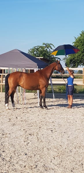 Gelding | 15 Jahre | ca. 1,66 m | Hannoveraner, aus Herzensdieb x Dacaprio Aus Zeitgründen verkaufe ich meinen fünfzehnjährigen Wallach, den ich selbst ausgebildet habe. Er ist ein absolut liebenswürdiger, ehrlicher Partner, der jeden Tag aufs Neue Freude bereitet. Ausbildung: Sicher im Dressuraufgaben auf M-Niveau. In den letzten Jahren habe ich ihn jedoch nicht mehr auf Turnieren vorgestellt. Turnierstarts sind möglich, sollten aber nicht im Vordergrund stehen. Springen haben wir immer nur zum Spaß gemacht. Dabei ist er sehr motiviert und zeigt Freude am Springen. Charakter: Im Umgang äußerst unkompliziert und menschenbezogen. Im Gelände ist er eine absolute Lebensversicherung – sowohl in der Gruppe als auch alleine. Derzeit lebt er in einem Offenstall mit täglich 8 Stunden Weidegang. Boxenhaltung ist ebenfalls möglich, allerdings sollte er tagsüber viel draußen sein. Er koppt leider, was jedoch keine Probleme verursacht und in der Offenstallhaltung kaum zum Tragen kommt. Ich wünsche mir für ihn ein liebevolles Zuhause, in dem er die Aufmerksamkeit erhält, die er verdient. Ideal wäre eine Reiterfamilie oder eine Familie, die ein sicheres und gut ausgebildetes Freizeitpferd sucht. Der Verkauf erfolgt nur, wenn wirklich alles passt. Bitte nur ernst gemeinte Anfragen.