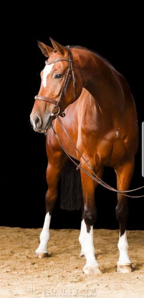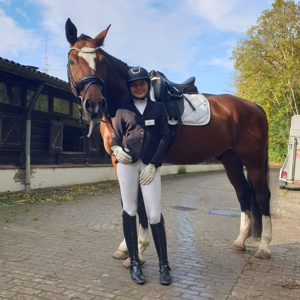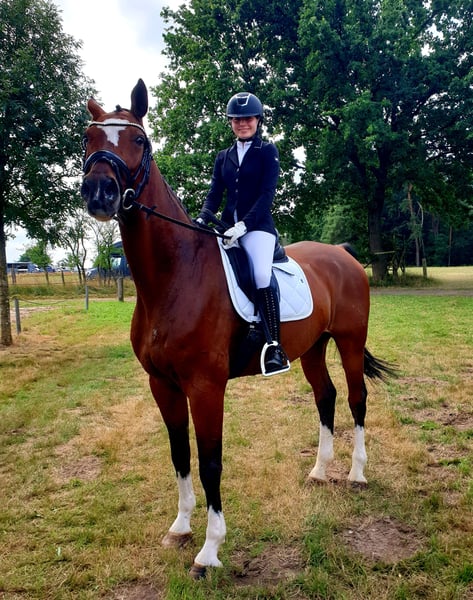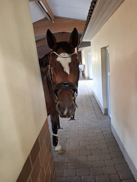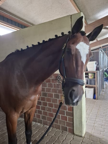 Collin is a stunning 15-year-old Hanoverian gelding who impresses with his charm, smooth gaits, and an exceptionally friendly nature. He is a true soul horse that aims to please his rider. Collin is especially suitable for teenagers, but also for sensitive, experienced riders; he is not a beginner’s horse. He is reliable and motivated both in dressage and in the field. In dressage, he is on the way to achieving M-level. In show jumping, he has successfully competed up to M** level but will no longer be used in jumping competitions due to a health weakness in his left hind leg. Collin is traffic-safe, loading-friendly, and farrier-friendly. He is social and well-behaved with other horses, both in the stable and on the pasture. In 2024, he was purchased as a school horse for our 15-year-old daughter and immediately impressed with a competition placement in dressage with a score of 7.3. However, since she wants to focus on show jumping, we are now seeking a loving home for Collin without pressure to perform. A mild spavin diagnosis from 2021 and a swelling in his left hind leg (diagnosed in November 2025) currently do not limit him in dressage or leisure riding. Therefore, he is offered at a reduced price. Please contact us by phone if interested: 01520 1616776