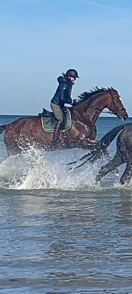 Collin est un magnifique hongre Hannoverien de 15 ans, qui séduit par son charme, sa légèreté et son tempérament exceptionnellement amical. C’est un véritable cheval de cœur, qui souhaite faire plaisir à son cavalier. Collin convient particulièrement aux jeunes cavaliers, mais aussi aux cavaliers sensibles et expérimentés, car il n’est pas adapté aux débutants. Il est fiable et motivé aussi bien en dressage qu’en extérieur. En dressage, il progresse vers la classe M. En saut d’obstacles, il a été présenté avec succès jusqu’à la classe M**, mais en raison d’une faiblesse de santé au niveau de sa patte arrière gauche, il ne sera plus utilisé en compétition de saut à l’avenir. Collin est sûr en circulation, ainsi que facile au défilé et à la ferrure. Il se montre sociable avec les autres chevaux, aussi bien en box qu’au pré. En 2024, il a été acheté comme cheval d’apprentissage pour notre fille de 15 ans et a immédiatement brillé avec une place en compétition de dressage, obtenant une note de 7,3. Cependant, souhaitant se concentrer sur le saut d’obstacles, nous recherchons pour Collin un foyer aimant, sans pression de performance. Une légère suspicion de spatt datant de 2021, ainsi qu’une inflammation au niveau de la patte arrière gauche (diagnostic de novembre 2025), ne limitent actuellement pas ses activités en dressage ou en loisir. Il est donc proposé à un prix inférieur à sa valeur. Pour toute demande, merci de contacter par téléphone : 01520 1616776