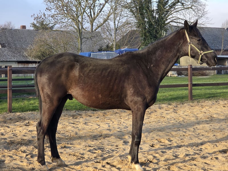 Biete hier im Auftrag einen 2 jährigen Hannoveraner Wallach an. Er ist sehr menschenbezogen, er möchte am liebsten immer betüdelt und gekrault werden er ist im Umgang wirklich ein Schatz ist auch an neuen Dingen immer sehr interessiert. Lässt sich anbinden, putzen und Hufe geben ist kein Problem für ihn, ist geimpft und entwurmt und die Zähne wurden gemacht. Er kommt momentan Nachts in die Box und tagsüber im Offenstall mit anliegenden Paddock. Hufe werden demnächst wieder gemacht. Er stammt ab von Fanegro/ Dancier und ist geboren am 3.3.24 ist ein Rappe mit 4 weissen Fesseln und wird um die 170 cm groß. Er wird sicherlich ein toller Freizeitpartner. Wegen eines Schönheitsfehler unter dem Wert zuverkaufen (Übergebiss). Bilder sind ganz Aktuell