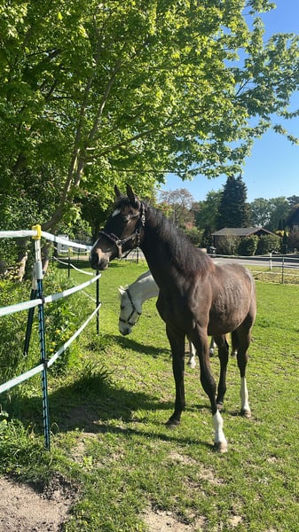 Vielversprechender Hannoveraner Spring-Wallach mit Top-Abstammung – Nachwuchspferd für den großen Sport Zum Verkauf steht ein äußerst typvoller Hannoveraner Wallach, geboren am 31.05.2024, abstammend von Chubakko aus einer Quaid – Gralshüter – Pinocchio Mutterlinie. Dieser junge Wallach vereint eine hochinteressante Springgenetik mit besten Aufzuchtbedingungen und bringt alles mit, um sich perspektivisch im Springsport zu entwickeln. Er ist in einer kleinen, sozial stabilen Herde bei uns Zuhause aufgewachsen und verbringt täglich viele Stunden im Freien. Eine artgerechte Aufzucht mit durchgehendem Zugang zu Heu sowie abgestimmter Mineralfutterversorgung bildet die Grundlage für seine gesunde Entwicklung. Entsprechend zeigt er sich ausgeglichen, menschenbezogen und sozialverträglich. Bereits jetzt überzeugt er mit vielversprechenden Grundgangarten, besonders hervorzuheben ist sein groß angelegter, bergauf gesprungener Galopp, der ihn klar als zukünftiges Springpferd erkennen lässt. Im täglichen Umgang präsentiert er sich unkompliziert und altersgerecht: • kennt das Halfter • kennt Hufe geben und Putzen • ist artig beim Hufschmied • einmal Anhänger gefahren (noch wenig Erfahrung, altersentsprechend) Ursprünglich als eigenes Nachwuchspferd vorgesehen, wird er nun ausschließlich aufgrund privater Veränderungen abgegeben. Gesucht wird daher ausdrücklich ein 5-Sterne-Zuhause, in dem er weiterhin schonend, pferdegerecht und mit Zeit aufgebaut wird und im Mittelpunkt stehen darf. Da uns sein zukünftiges Zuhause sehr am Herzen liegt, freuen wir uns über eine kurze Vorstellung von Ihnen, Ihrer Pferdeerfahrung sowie den geplanten Haltungsbedingungen. Weitere Informationen gerne auf Anfrage. Standort Minden