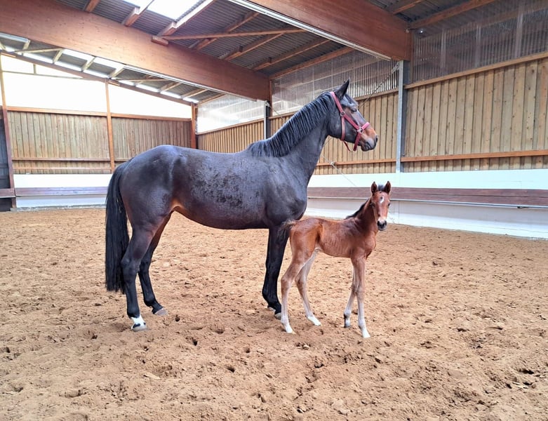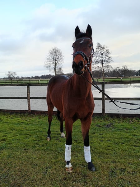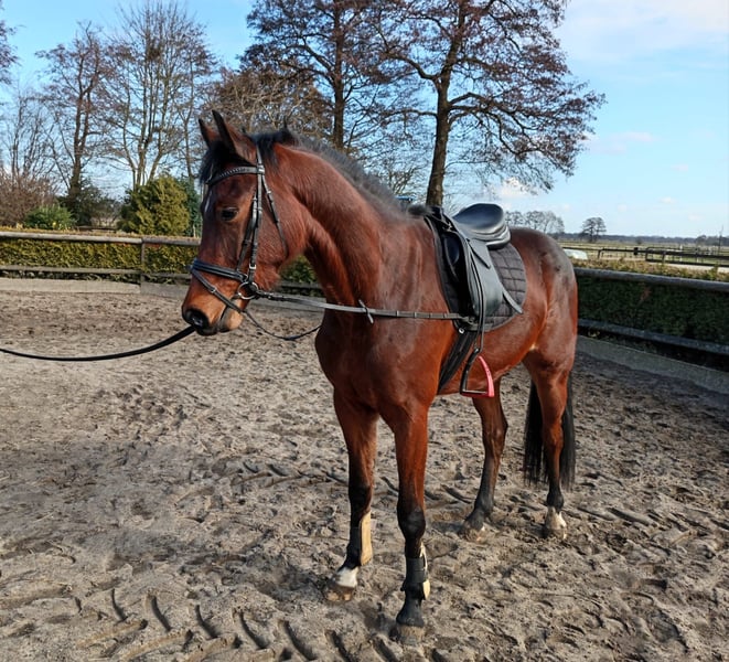 This three-year-old gelding, Cello, is a dark bay with his pedigree tracing back to Casino Grande, bred by the Sosath family. His sire, Casino Grande, impresses in his work through his rideability, attitude, and quality of movement. He has achieved success in show jumping up to 1.55 m, including placements at the German Championships in Balve and the World Cup tournament in Leipzig, as well as other international competitions over 1.55 m. Casino Grande has numerous successful offspring, including the winning mare of the mare performance test in Rastede, the Oldenburg regional champion of show jumping horses, and licensed stallions from the licensing in Munich, among others. Many of his progeny compete successfully in S-level show jumping (over 1.40 m). The dam line extends through Viscount and Argentinus. Viscount was successful in both dressage and show jumping at S-level. His offspring are also competing in S-level dressage and jumping tests, demonstrating his rideability and willingness to perform in his genetics. Argentinus himself has over 100 licensed sons and has become a legend in show jumping, making a significant mark in the sport. Born in March 2023, Cello was raised in a family environment and is currently undergoing gentle training. He is very eager to learn, listens well, and always strives to do his best. He is willingly saddled and bridled and is familiar with lunging in all three basic gaits. Additionally, he already knows ground work with poles. He is farrier- and vet-friendly. The next steps in his training include free jumping and carrying rider weight. Cello has a solid foundation and a very compact build. He currently measures approximately 16.2 hh. The horse is located in Oyten. Viewings are possible at any time by arrangement. The horse is being offered due to the owner's retirement from riding.