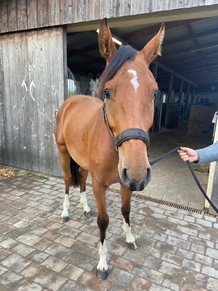 Je vends notre magnifique hongre Franz. C'est un véritable trésor à manipuler et il est également très agréable à monter. Il n'est pas seulement docile, mais ses mouvements sont également très prometteurs. Son allure laisse présager une carrière en dressage. En raison de ses origines bloodlines, je peux également l'imaginer comme un cheval de hunter ou de concours complet. Il a déjà franchi ses premiers sauts avec succès sous la selle. Franz a toujours été en bonne santé, n'a jamais été blessé et ne présente aucune particularité désagréable. Vous cherchez un partenaire de loisir ou un jeune cheval avec du potentiel ? Alors, notre Franz pourrait bien être la fin de votre recherche :) Photos disponibles Fer à gauche Calme au départ en camion