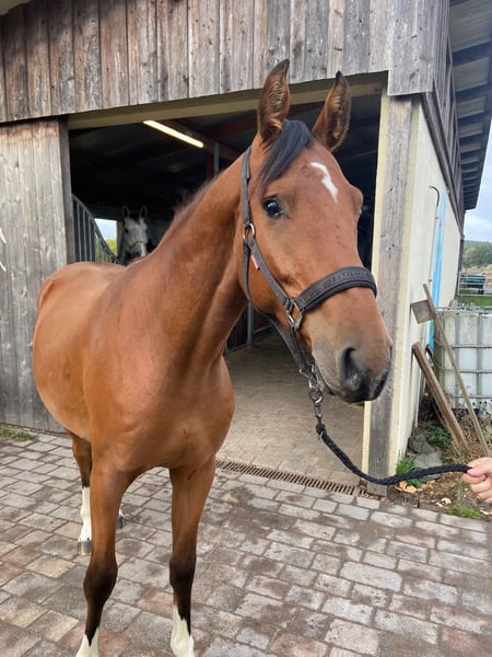 I am offering our beautiful gelding Franz for sale. He is a true sweetheart in handling and very pleasant to ride. Not only is he well-behaved, but he also moves very promisingly. His movement suggests a bright future in dressage competition. Due to his bloodlines, I can also see him as a hunter or eventing horse. He has already successfully jumped some small fences under saddle. Franz has always been healthy, never injured, and has no unpleasant quirks. Are you looking for a leisure partner or a young horse with potential? Then perhaps Franz is the answer to your search :) Photos available Front hoof protection Loading is no problem
