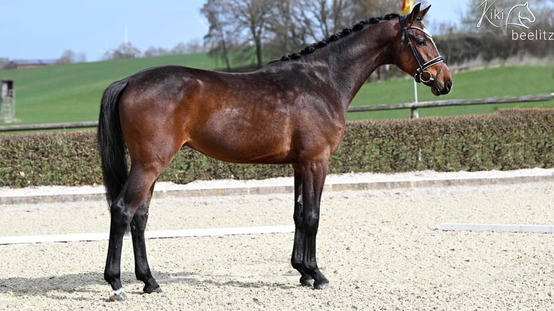Dieser junge Sportler überzeugte bereits als Fohlen. Er qualifizierte sich für das Deutsche Fohlenchampionat in Lienen und war dort das beste springbetonte Hannoveraner Hengstfohlen https://www.clipmyhorse.tv/de_DE/horse/aed2869a-83b7-435f-9b7a-edb874ff2c1d#0 Aktuell misst Countach 1,66m. Er ist im Umgang ausgesprochen brav und lernbereit. Freispringen absolviert er mit Bravour und sucht nun einen Reiter der ihn formt und für den Sport ausbildet. Countach ist modern konstruiert, mit blitzschnellem Vorderbein und guter Übersicht am Sprung. Er ist schmiede- und verladefromm. Momentan wird er angeritten, Bodenarbeit mit Trense, Longe und Gurt absolviert er souverän. Countach ist ein Versprechen in die Zukunft, ein tolles Sportpferd mit gemessener, super Genetik und einem grossartigen Charakter. Aus der Mutterlinie stammen Top Springer wie Con Juan und New Love 2 (1,50m), Coyote Ugly / Al Ayar und Coolman, alle über 1,45m sowie Call him Top (1,40m). Aus der Mutterstute stammt auch die Siegerin der Zuchtstutenprüfung 2025 des PZV Hoya, mit Bestnoten für Springen, Trab, Galopp und Rittigkeit.