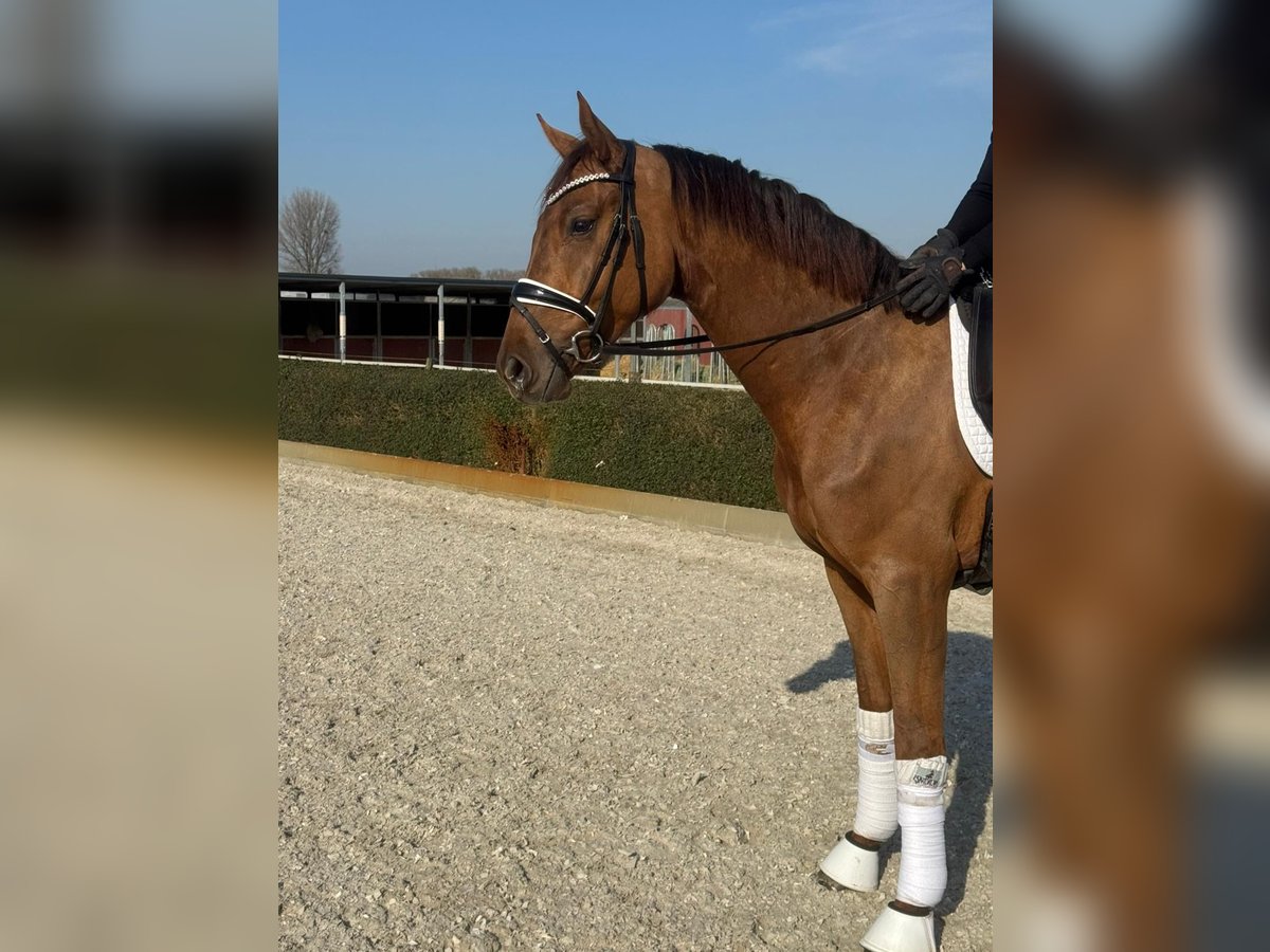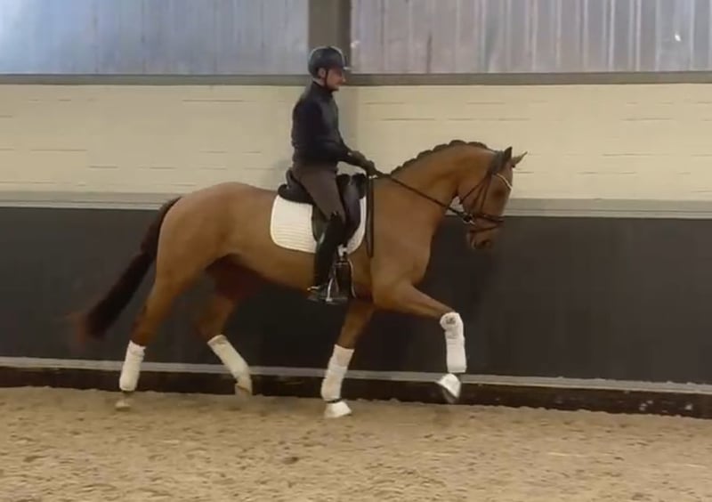 Hannoverian gelding, born in 2023, chestnut, with a height of 16.1 hh – a promising young talent for dressage. This charming chestnut impresses with his elegant appearance and solid foundation. He has already been well-started under saddle and is extremely friendly and eager to learn in handling. Thanks to his balanced temperament and good basic training, he is ideally suited for an ambitious dressage rider who values a strong foundation. With his modern look and potential, this Hannoverian gelding is an excellent investment for a future career in dressage. We look forward to hearing from interested parties.