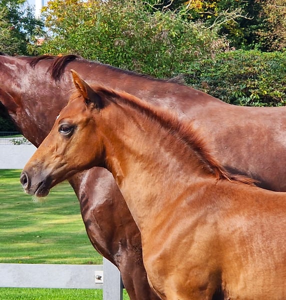 V-Gold *** For Sale! Chic dark chestnut colt by shooting star "V-Plus" out of a "De Niro Gold x Sunny Boy" dam. Equipped with good GGA and a correct exterior, this beauty enchants at first sight! https://www.youtube.com/watch?v=eHdg95m61Sc www.fohlenfreunde-sportpferde.de
