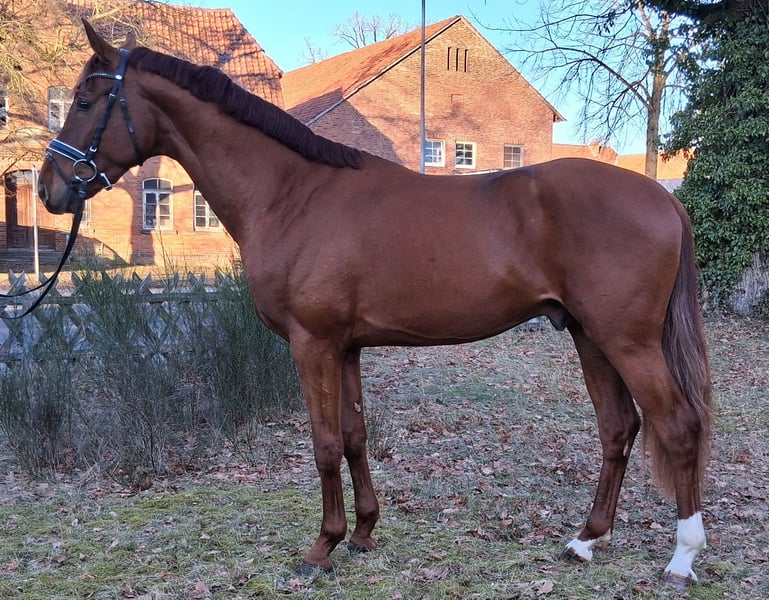 Hongre hannovrien, né en 2023, alezan, avec une taille d’environ 1,69 m. Ce jeune mâle prometteur séduit par son allure élégante et sa solide formation de base en dressage. En tant que pur-sang hannovrien, il allie qualité de mouvement, envie d'apprendre et un tempérament amical, ce qui le rend intéressant tant pour l’amateur ambitieux que pour le professionnel en dressage. Sa facilité à être monté et son caractère agréable le distinguent. Un partenaire prometteur pour l’avenir en dressage !