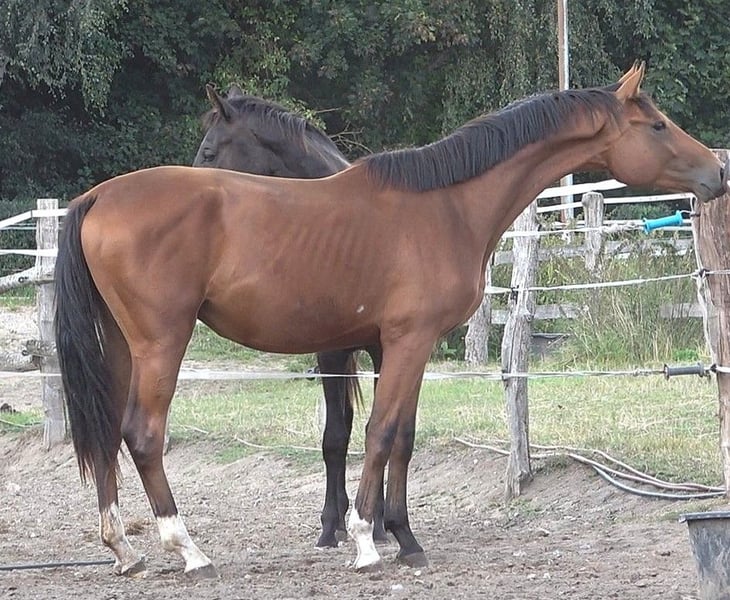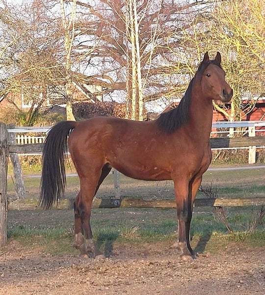 Valentino, de nun 3-jährige Wallach des Bundeschampionatsiegers Va Pensiero, (5 x die Note 10 beim 14-Tagestest) ist nun gelegt und getüvt (ohne Befund). Er macht seinem Vater und Großvater alle Ehre, mit seinen eleganten und doch kraftvollen Bewegungen. MV Scolari mit dem bewährtem Pedigree Sandro Hit x De Niro x Weltmeyer sichert das Dressurblut ab. Hinzukommt MMV Don Frederico, der mit dem Grandepreis ausgezeichnet und Hann. Hengst des Jahres 2012 geworden ist und neue Masstäbe setzte. Nicht zu vergessen, mütterlicherseits den Blutanschluß mit Marlesko xx und dahinter einer der ältesten Mecklenburger Stämme 149 von Adler- Adeps( Mistral I und II stammen aus der Linie) die über Generationen die Leistungsbereitbereitaschaft, Robustheit, Ausdauer, Fundanment , Klugheit und Schönheit vererben, was sich in der Vielseitigkeit bewährt hat. Mit seiner Ausdrucksstärke und seiner Bewegungsmechanik hat Valentino das Potential fürs große Dressurviereck, aber auch in der Vielseitigkeit oder als Freizeitpferd wird er gefallen