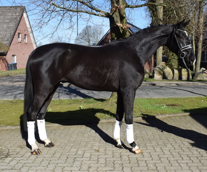 Hoffnungsvolles Dressurnachwuchspferd, das auf das große Dressurviereck gehört. Sie hat phantastische Bewegungen, immer elastisch und taktsicher. Sie ist nervenstark, absolut ehrlich und problemlos im Umgang. Er wird zur Zeit angeritten und präsentiert sich dabei sehr lernbereit und gelassen. Secretto kommt direkt vom Züchter und ist im Herdenverband aufgewachsen.