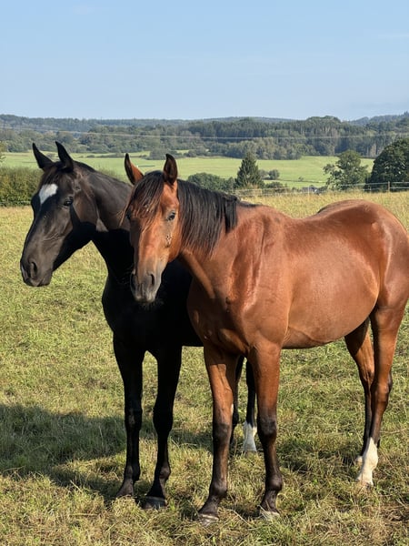 3-year-old Hanoverian gelding from our breeding with the best pedigree: BAILADORINHO CE (Bert) Sire: BAILADOR (Benicio x Florencio I) Dam: Hanoverian premium mare IXXI CE (IL DIVO x DON FREDERICO x WELTMEYER), BEST HALF-BLOOD mare 2020 at the Herwart von der Decken show, also with very good SLP Born: May 12, 2022 Height: 1.66 m Note: Good radiographic examination including neck and back is available. Bert has grown up in professional breeding with species-appropriate housing, has been regularly vaccinated, dewormed, and presented to the farrier. He is very people-oriented and ready for age-appropriate training. Due to the fact that he is still in the breeding phase, unfortunately, there is no meaningful, current video available that does justice to his quality.