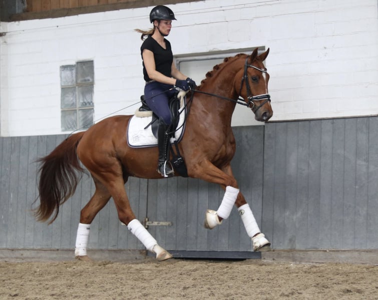 Shutendro has been a model student from day one; he does everything right every day and gives the rider a sense of security due to his excellent natural balance. His canter and walk are already particularly expansive and powerful, and in the trot work, he always shows himself to be relaxed and loose with a lot of rhythm. Shutendro is a wonderful training horse in many respects. Due to his very good work ethic, good character, and balanced temperament, he can also become a great sport partner and buddy for an amateur. X-rays are good.