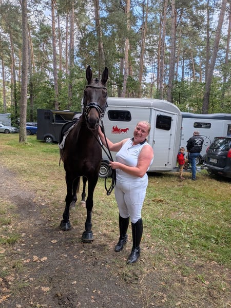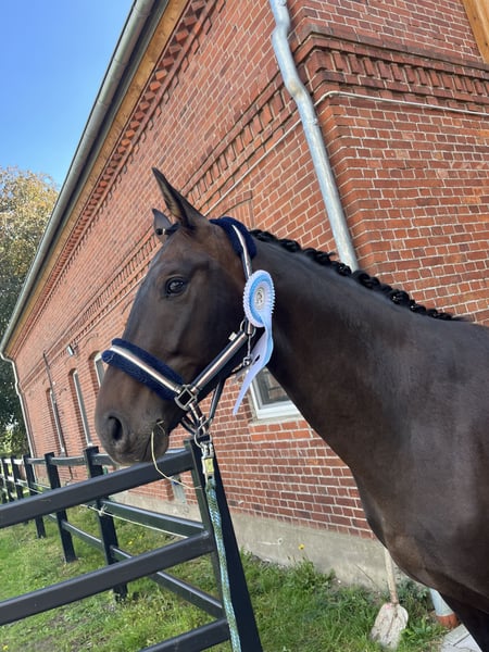 High-quality Franziskus - Don Vino offspring This four-year-old gelding is equipped with very good basic gaits and was able to impress at his first competition, placing immediately in a riding horse test. He always brings a lot of joy while riding due to his positive work attitude. He is always friendly and interested in handling. Essentially, he always wants to please his rider. Due to his gentle nature, he is suitable for both amateurs and young riders. He also behaves well in the field. The perfect four-legged partner for further training. His current height is 1.65 m.