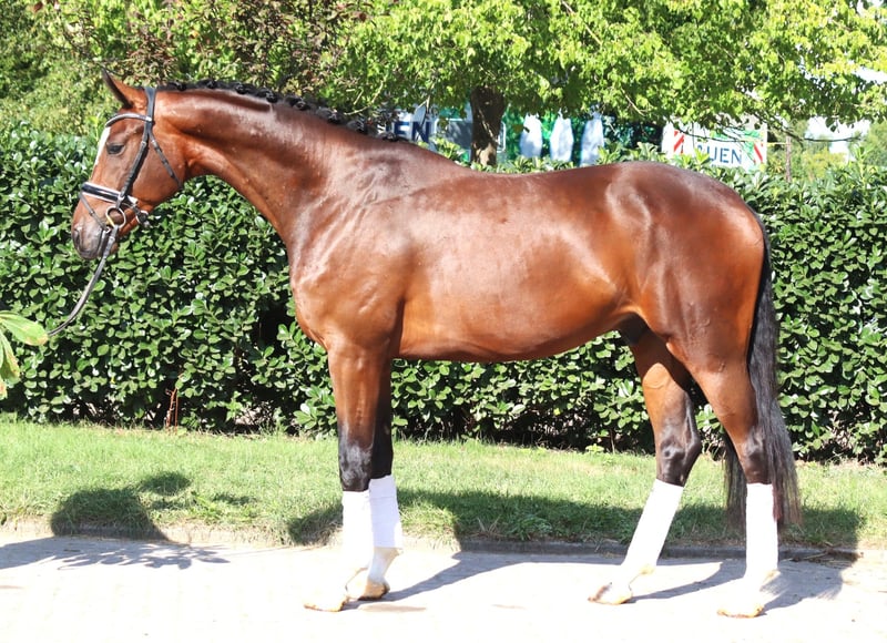 Typvoller 4 jähriger Wallach von Don Romance x Benetton Dream mit enormen Bewegungspotenzial. Er ist super brav im Umgang und unkompliziert und schön zu reiten. Preis zzgl. Mwst. Anfragen nur telefonisch, E-mails werden nicht beantwortet.