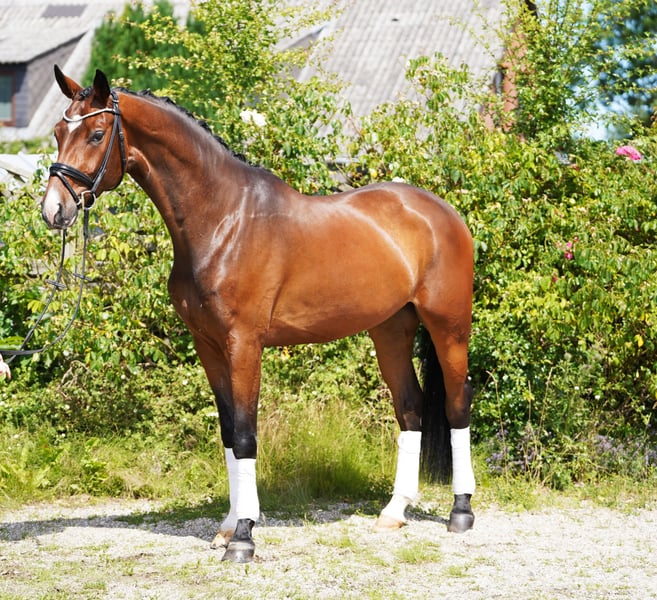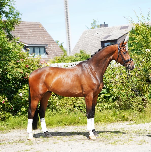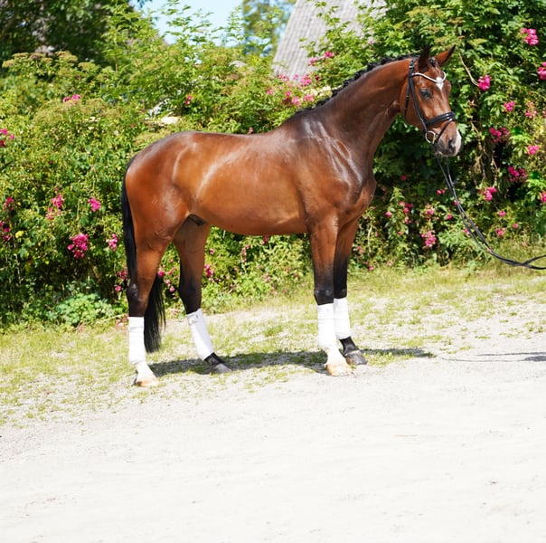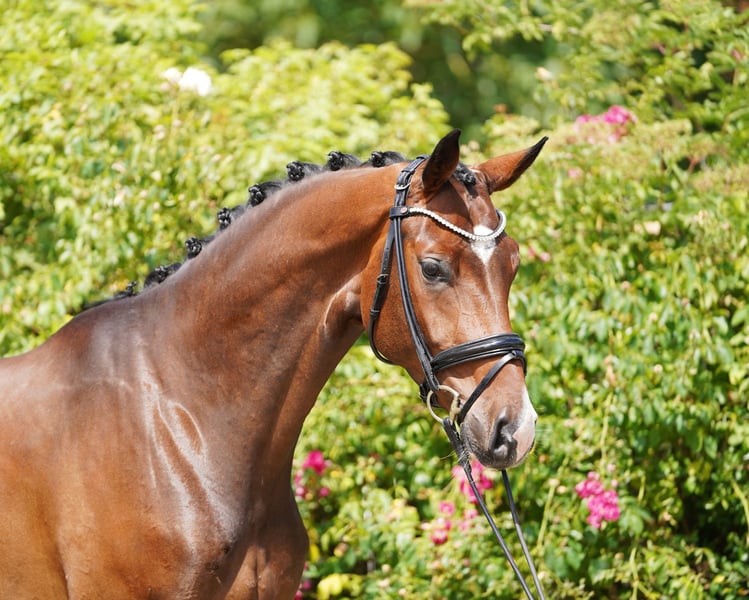 Charming young horse with that special something 4-year-old gelding with striking markings and potential for dressage sport This young gelding is memorable – not only because of his sweet, distinctive white nose but also thanks to his three very good basic gaits and his pleasant rideability. He has been gently started under saddle and is currently on his way to the dressage horse A-level. Light in the hand, comfortable to sit, and always eager to do everything right – this is how he presents himself day after day under the saddle. A great horse for ambitious leisure riders and for competition sport. He is also a suitable partner for riders who enjoy further training of a talented dressage horse. In daily handling, he always shows himself to be well-behaved, friendly, and uncomplicated – both in the stable and in the herd. No emails, only calls Information without guarantee Price plus VAT