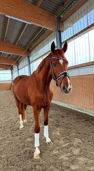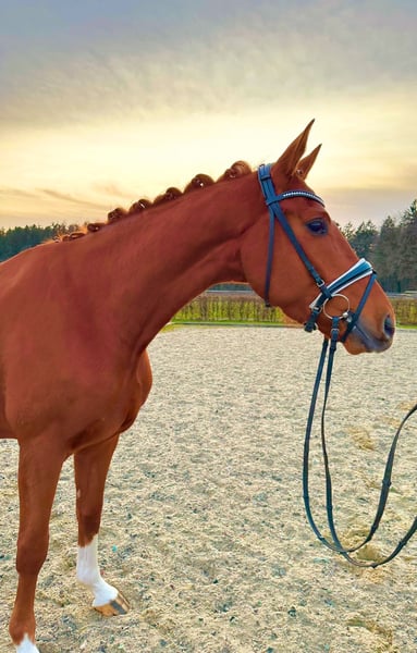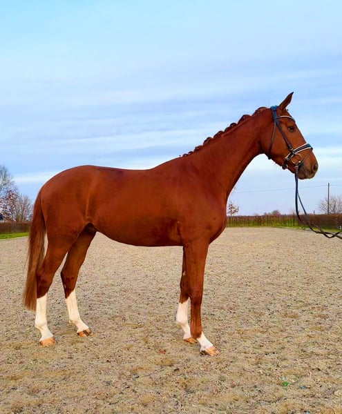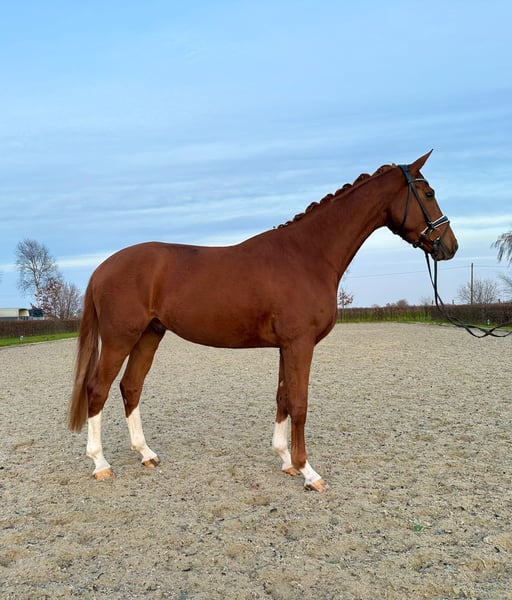 Saro ist ein 2022 geborener Fuchswallach vom Vererbungskünstler Secret aus einer Dornenkönig, Waterford Mutter. Vier mal weiß, ein hübscher Kopf und ein Charakter zum verlieben! Dieser wunderschöne Wallach besticht nicht nur durch seine Optik, sondern auch durch seine offene und menschenbezogene Art. Mit viel Bewegungspotential und sehr guter Rittigkeit bringt er alles mit, um ein tolles Ausbildungspferd zu werden. Für den Sport, als Partner in der Freizeit oder auch für den ambitionierten Freizeitreiter. Saro ist gerade angeritten und wird derzeit weiter ausgebildet. Direkt vom Züchter, im Auftrag zu verkaufen Wir wünschen uns ein liebevolles Zuhause mit tollen Haltungsbedingungen für Saro. Videos senden wir gerne zu
